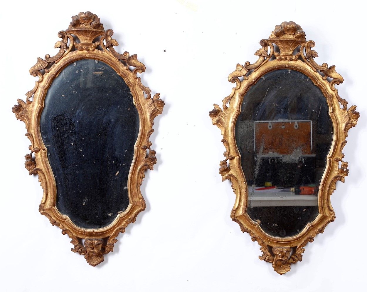Coppia di specchiere in legno intagliato e dorato. XVIII-XIX secolo