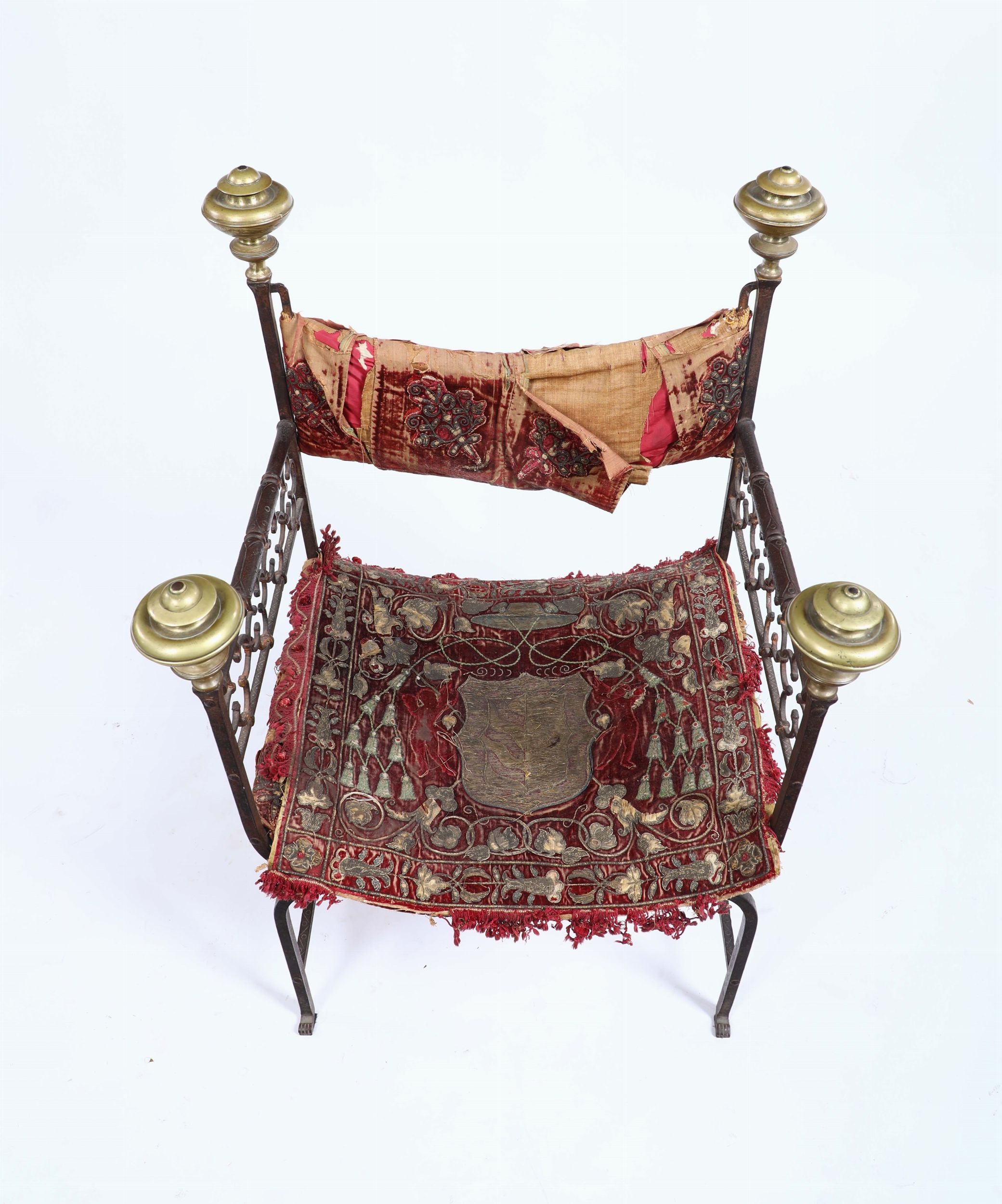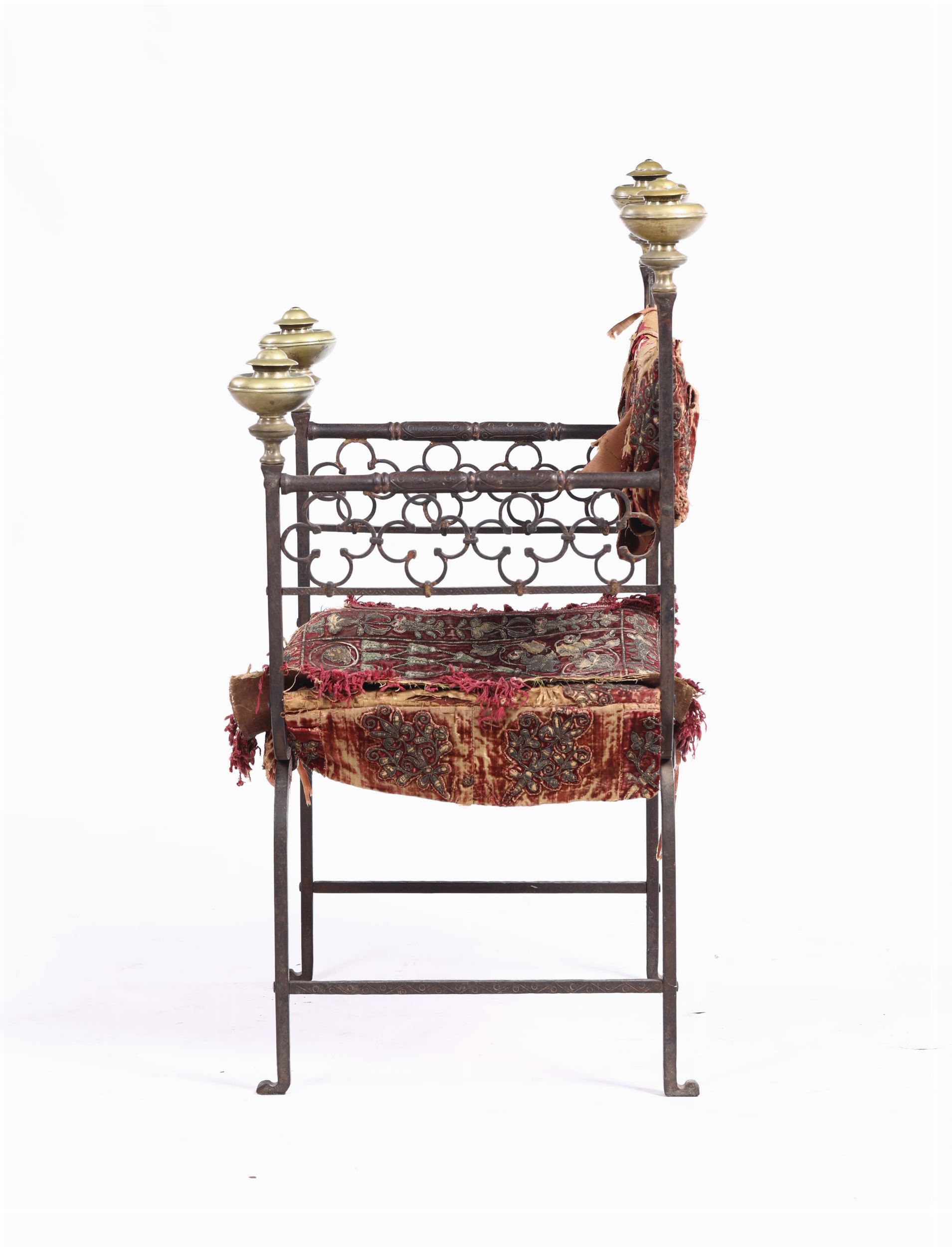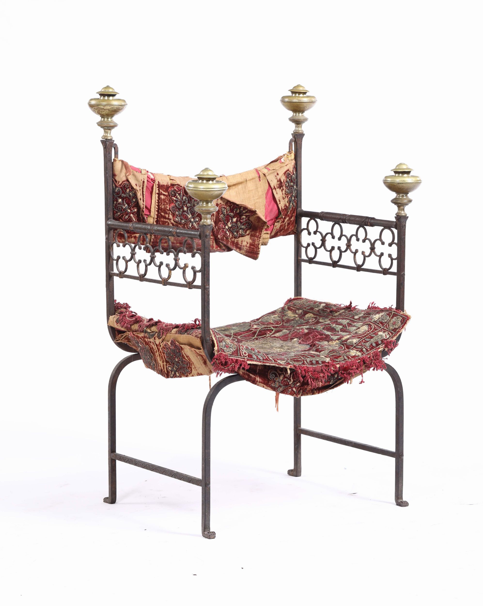 Faldistorio in ferro di forgia, schienale d’innalzo con pinnacoli a boccia tortile [..]