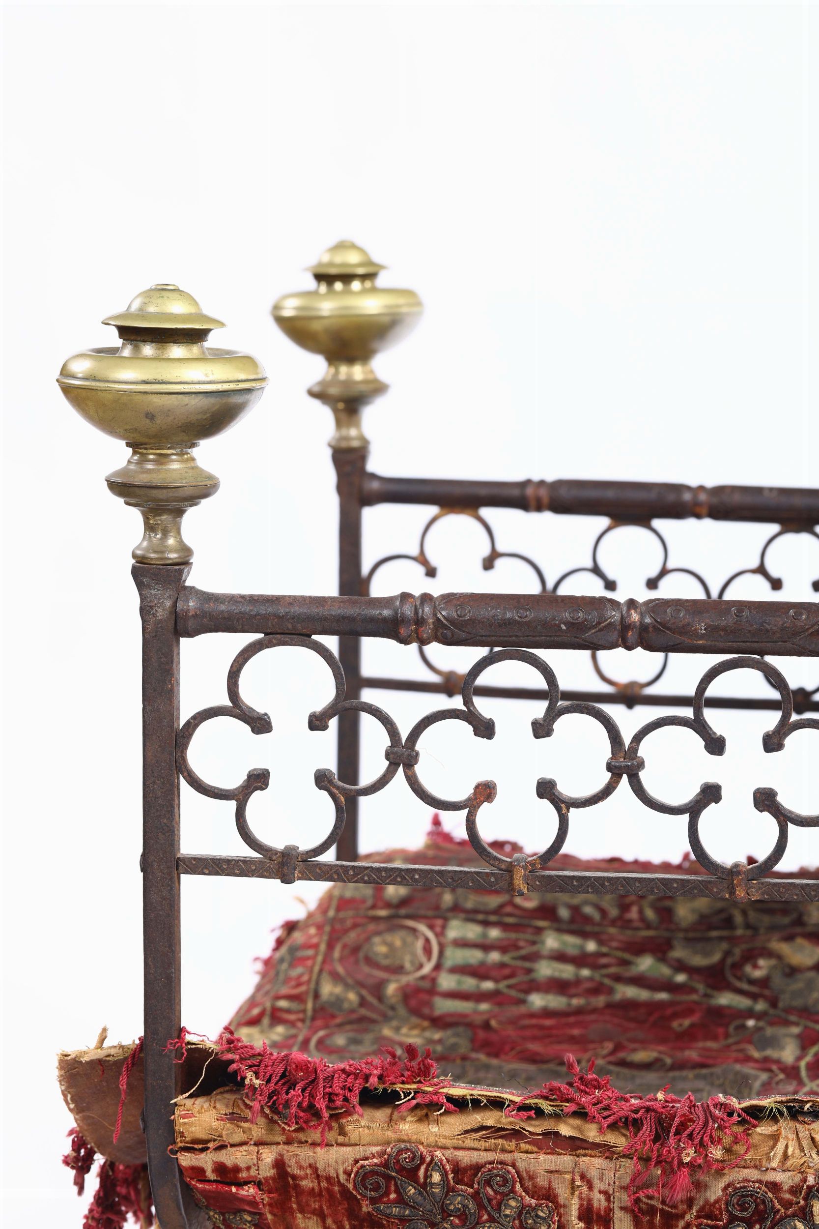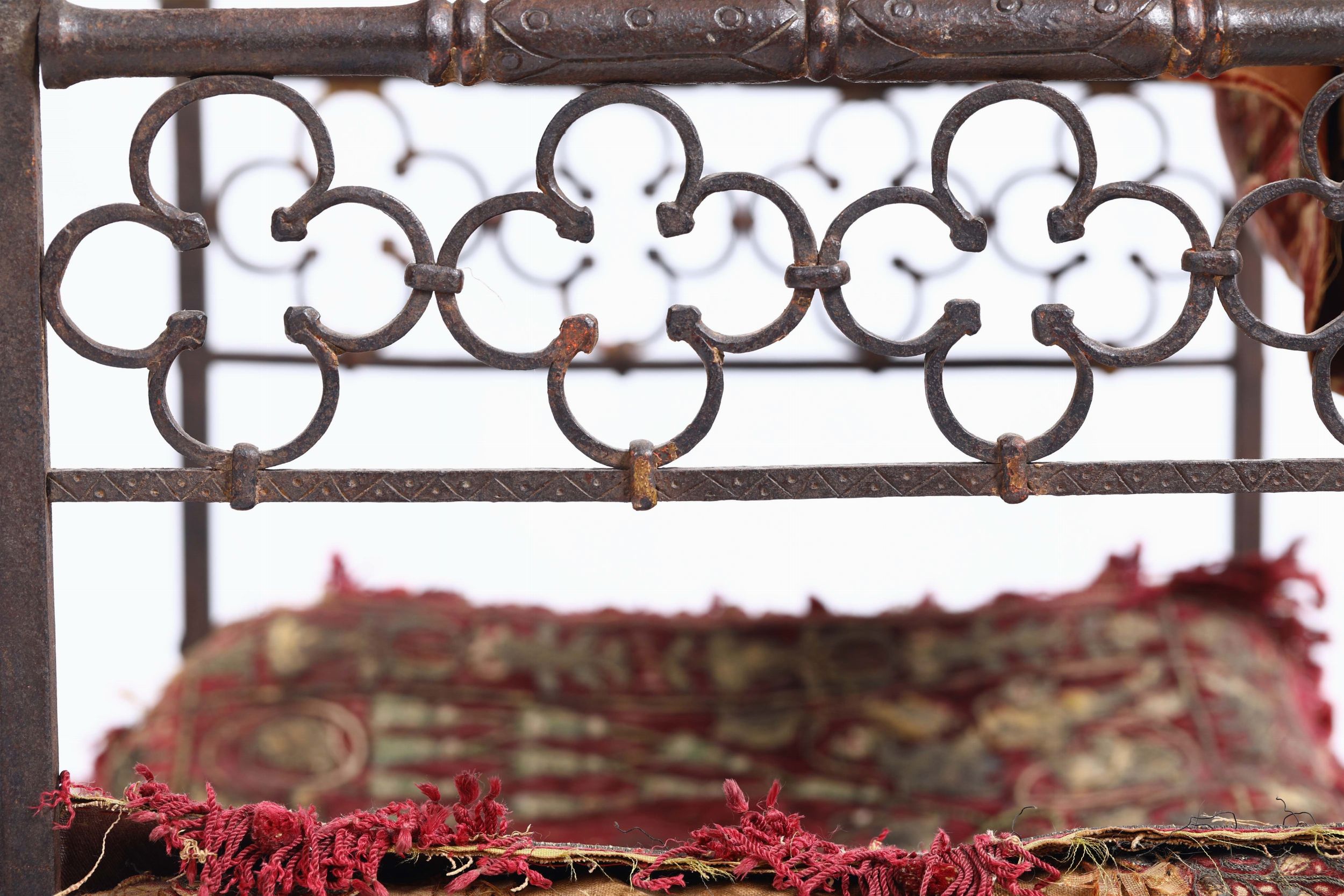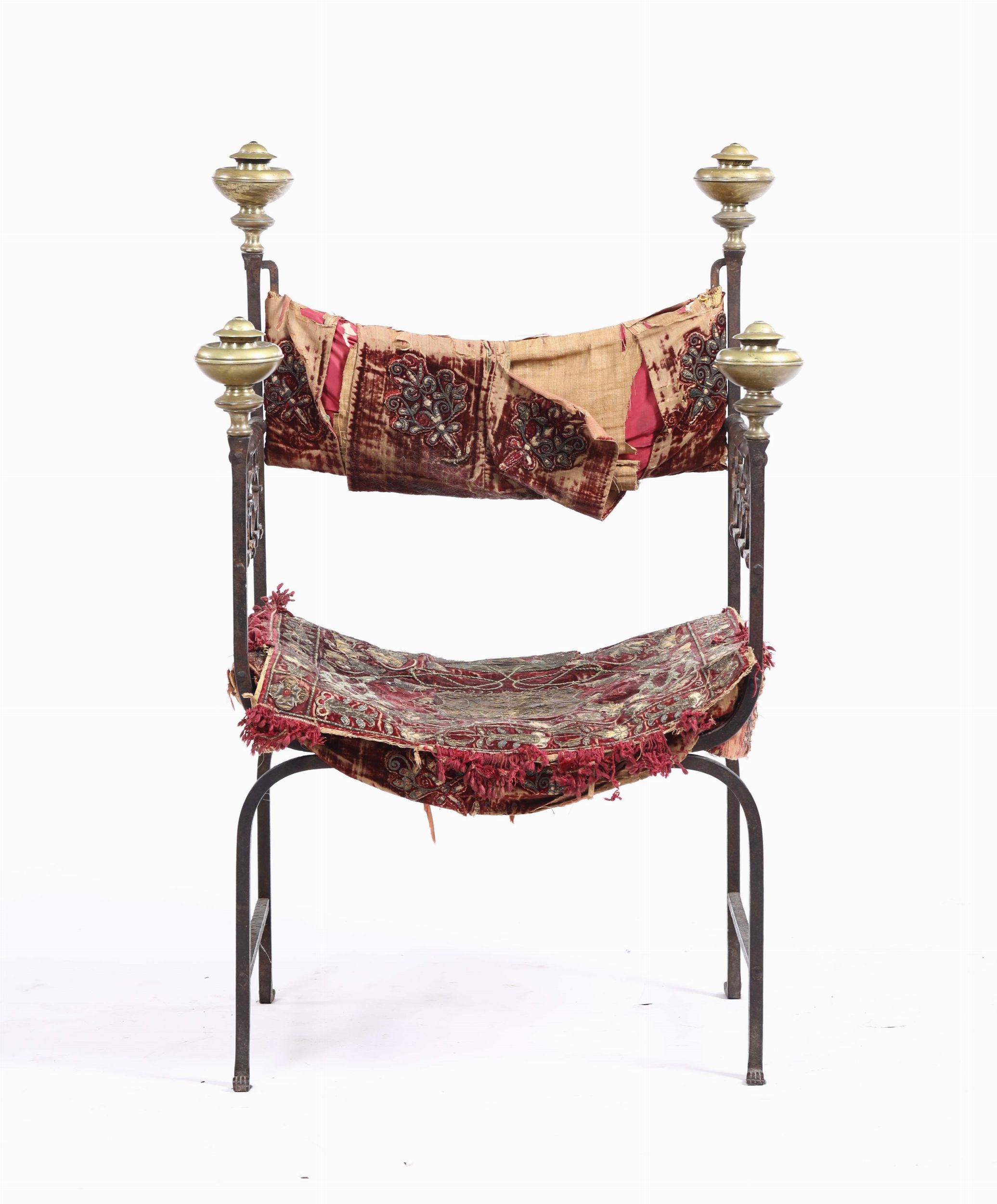 Faldistorio in ferro di forgia, schienale d’innalzo con pinnacoli a boccia tortile [..]