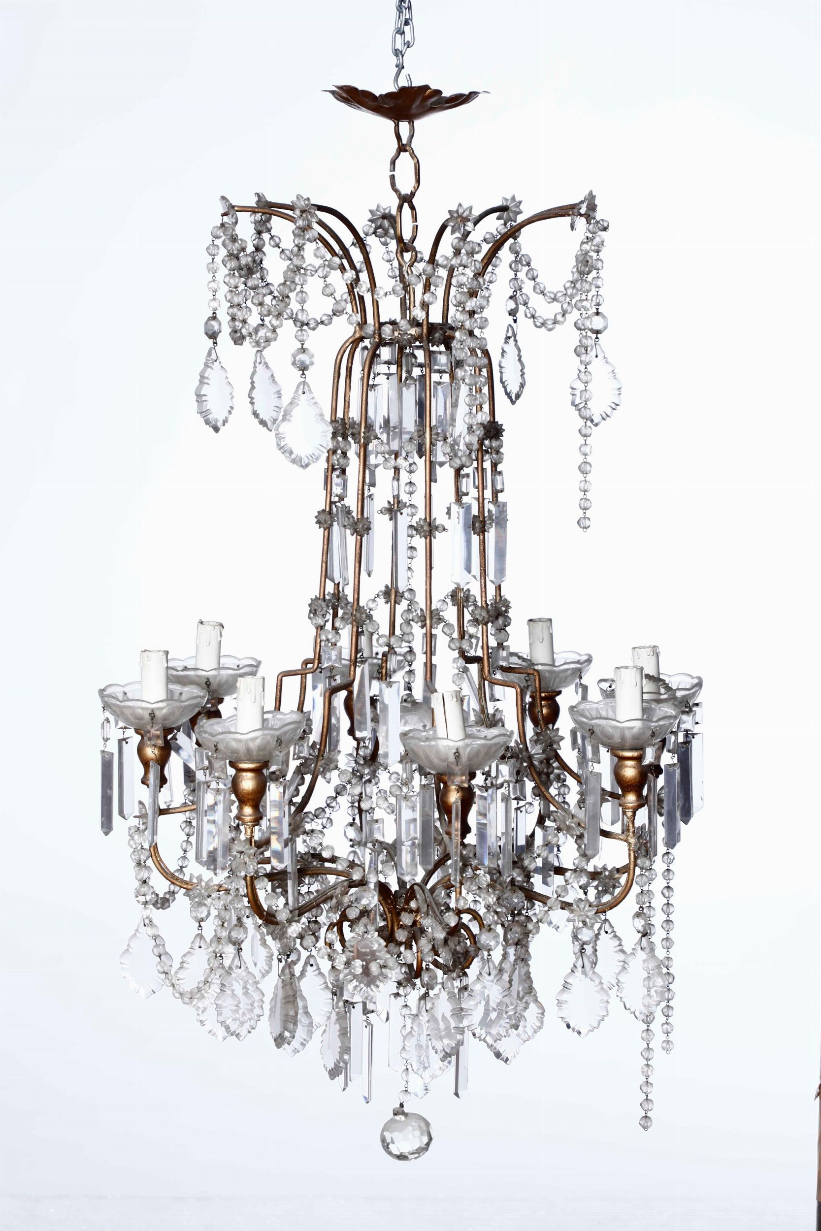 Lampadario ad otto luci in metallo e cristallo. XIX-XX secolo