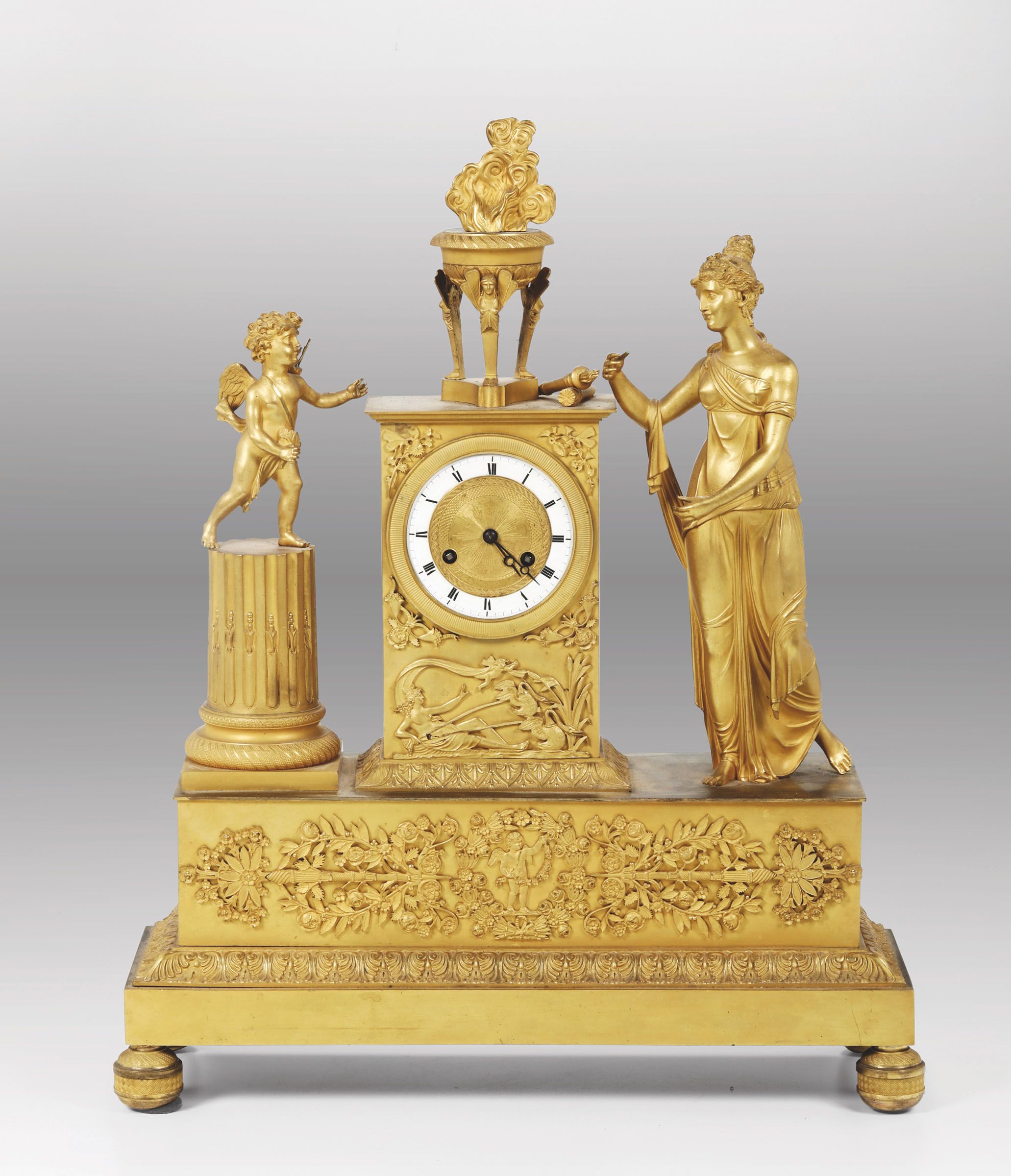 Pendola da tavolo in bronzo dorato e cesellato, Francia XIX secolo
