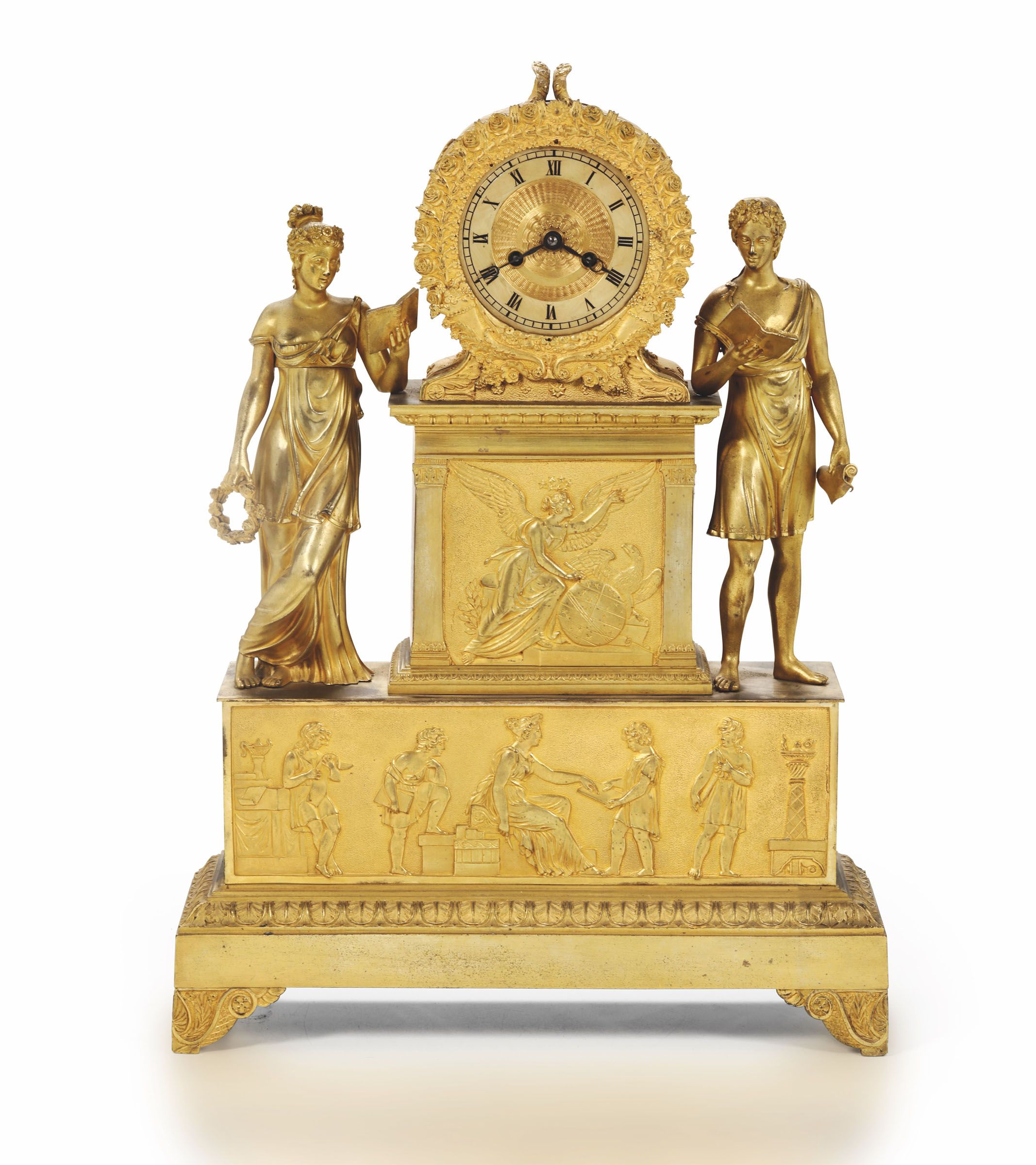 Pendola da tavolo in bronzo dorato e cesellato, Francia XIX secolo