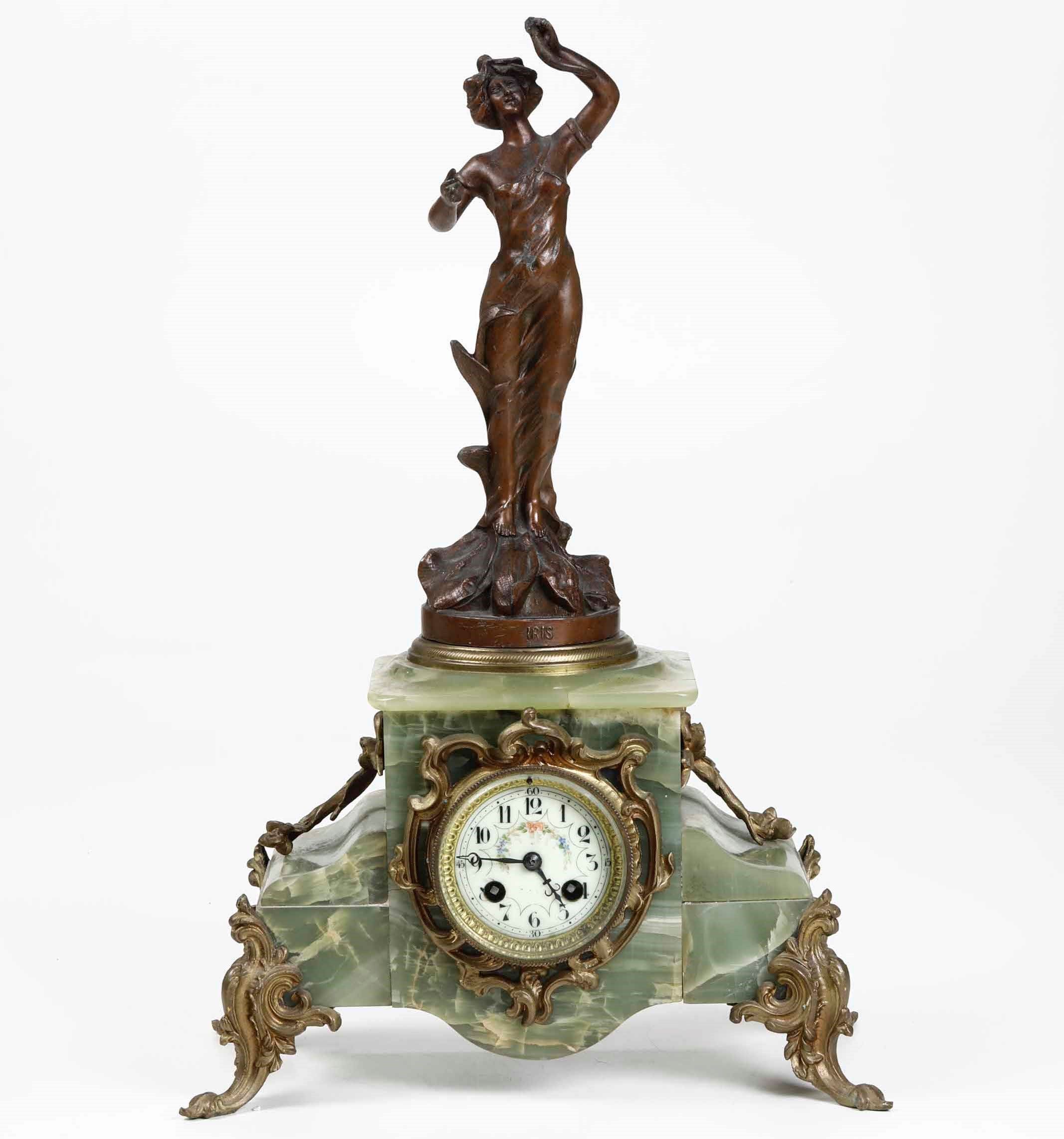 Pendola da tavolo in bronzo e onice. XX secolo