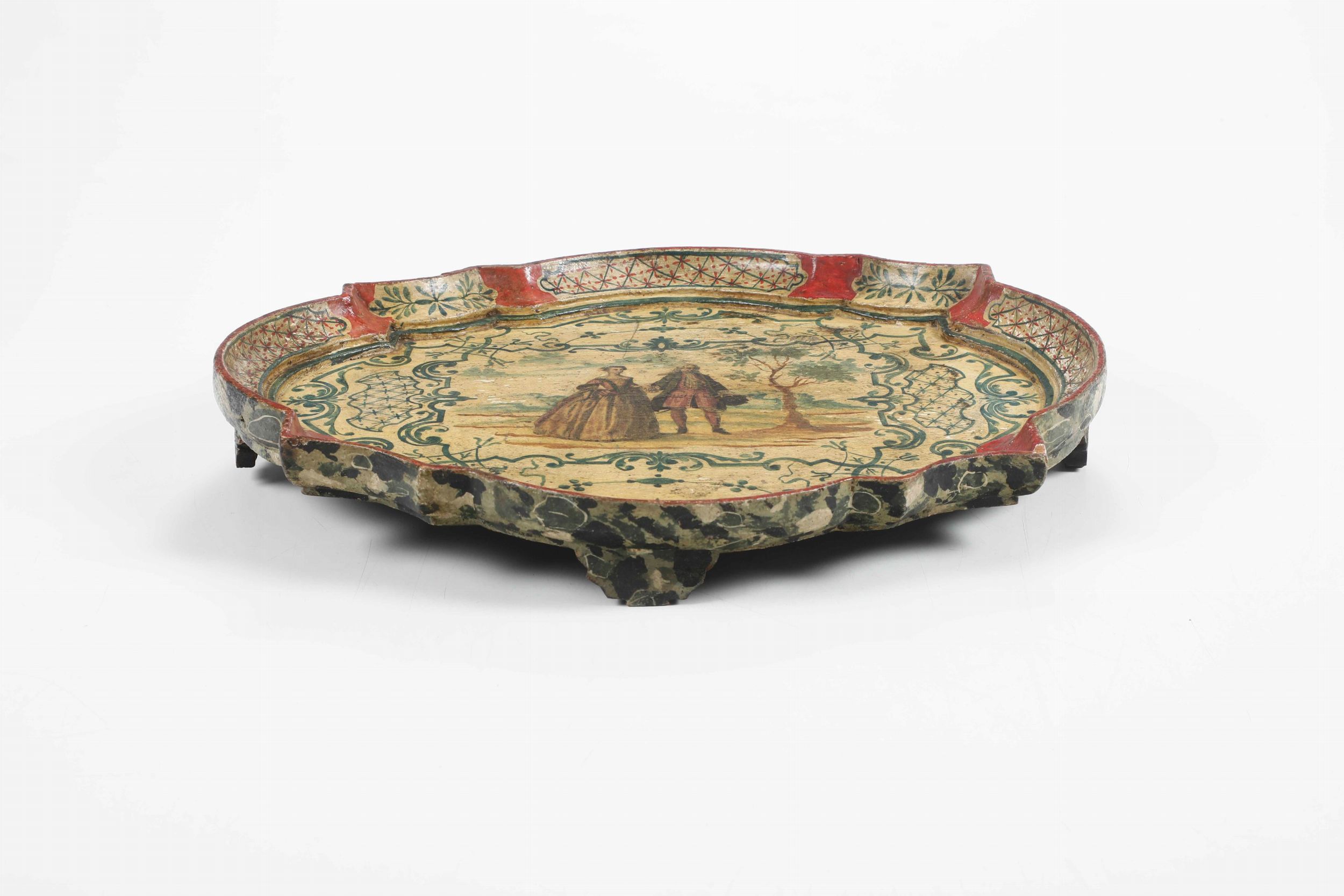 Vassoio in legno laccato e decorato ad arte povera. Venezia, XVIII-XIX secolo