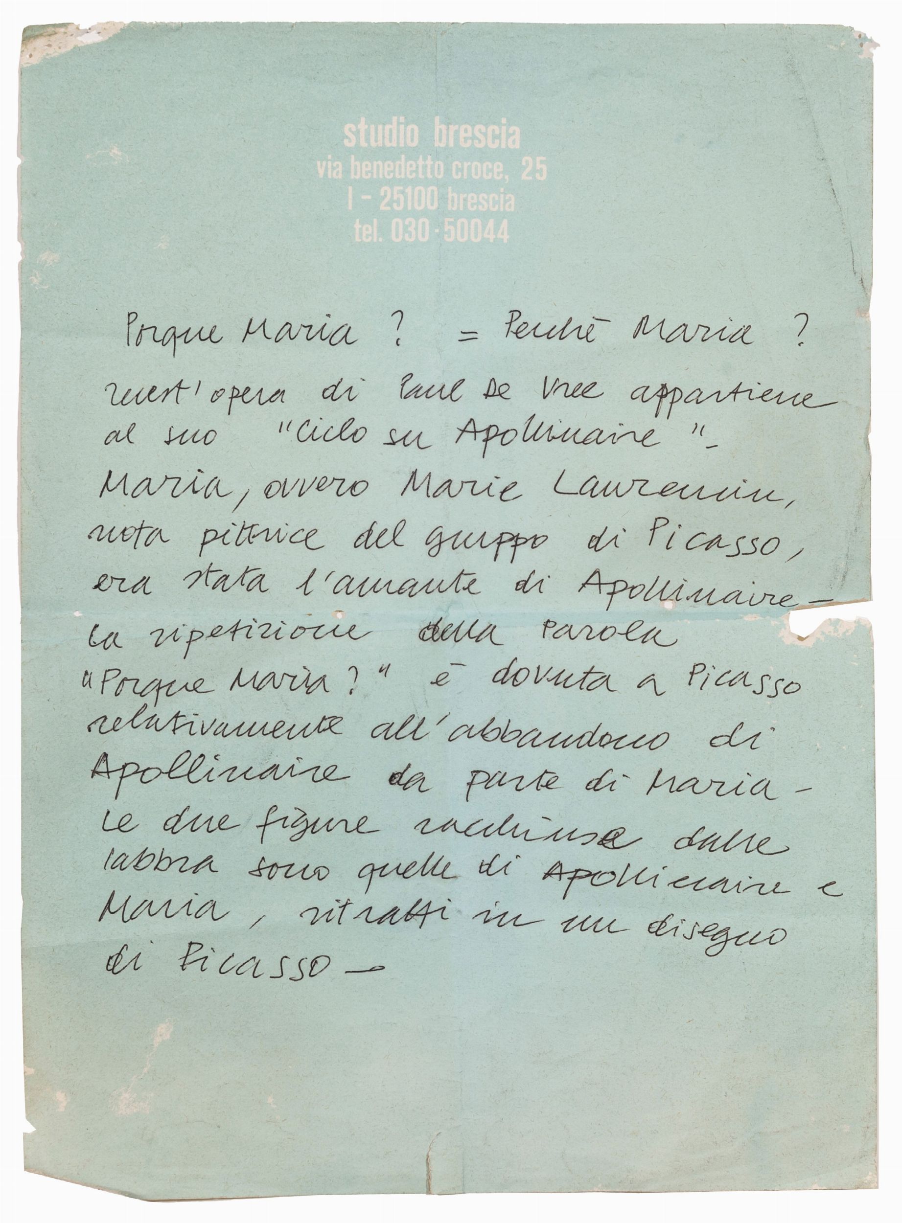 Porqué Maria? - Dal Ciclo su Apollinaire