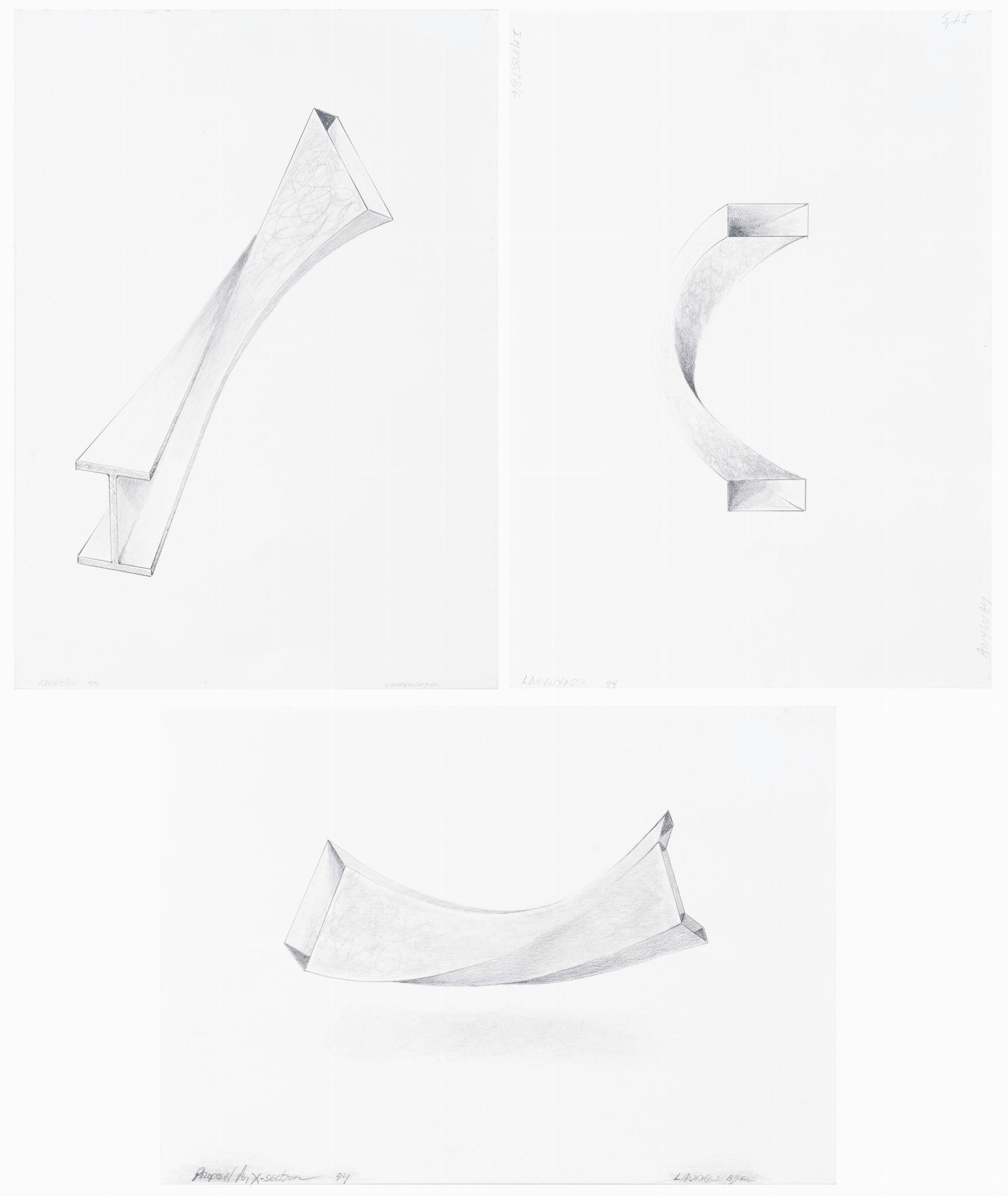 lotto di 3 disegni a matita su carta, cm. 30x42 cad.