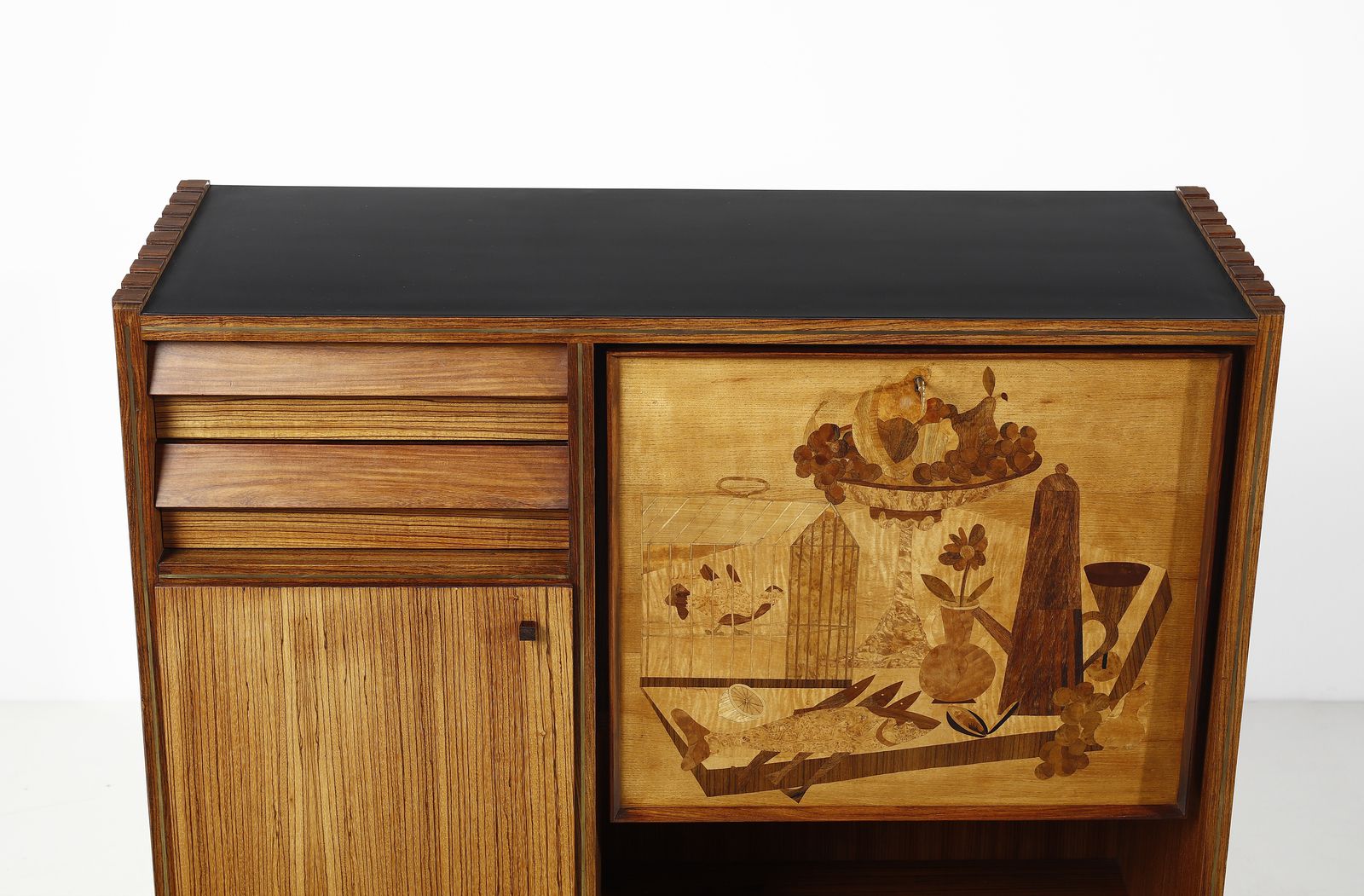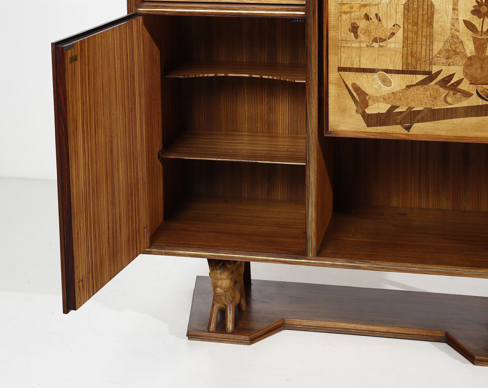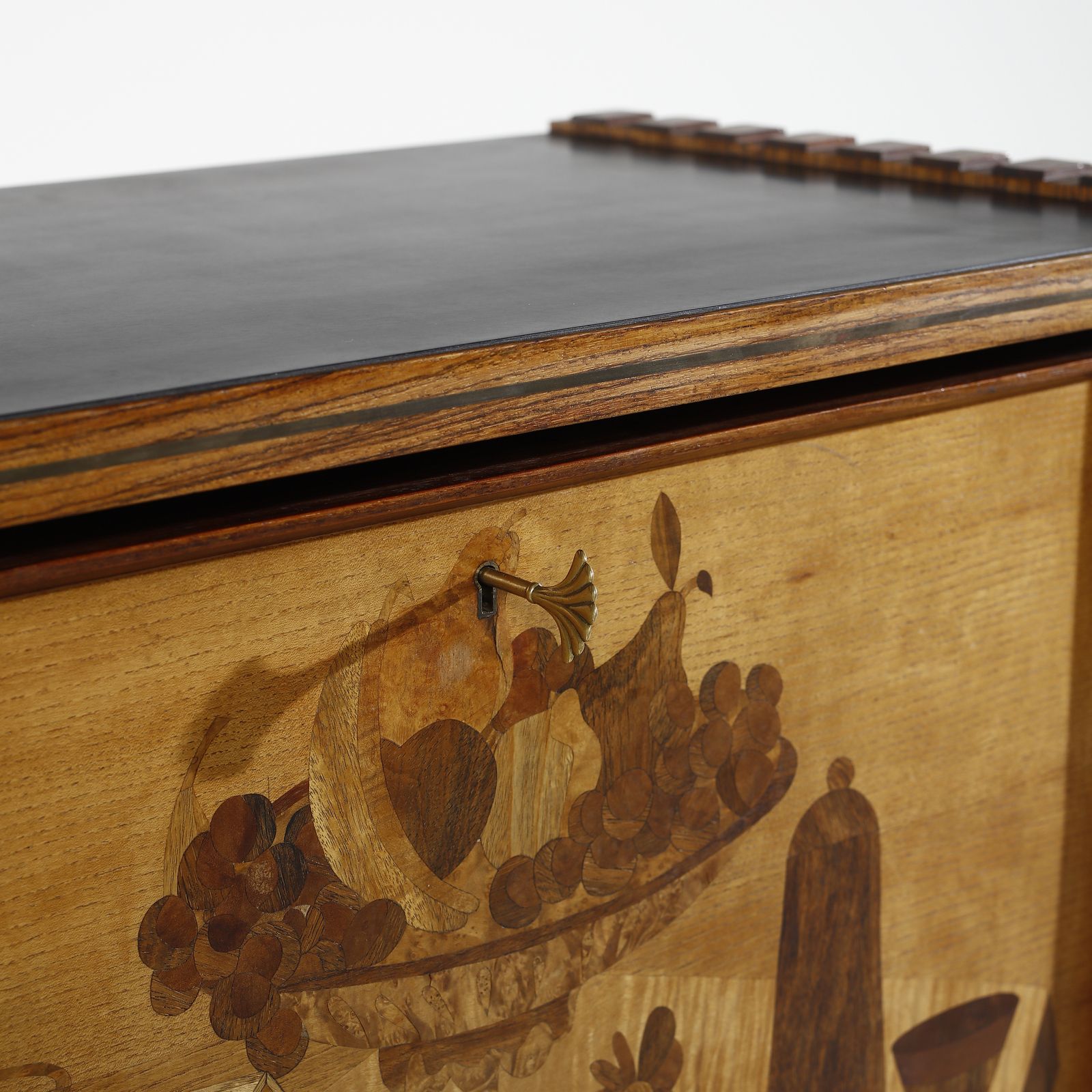 Etichetta della manifattura, intarsio su cartone di Marino di Meo.