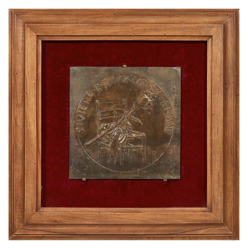 L'opera fa parte di una serie di medaglie e placche commemorative pensate intorno al 1981 da Rodolfo Siviero per celebrare, nell'ambito dei festeggiamenti per l'inaugurazione di un museo delle opere ritrovate in Palazzo Vecchio, i personaggi che avevano sostenuto il lavoro dell'ufficio di Siviero. La morte di quest'ultimo nel 1983, impedì l'attuazione del progetto, ma molti rilievi e medaglie erano già stati eseguiti da scultori come Manzù e Berti, e sono rimasti nella casa-museo. Il soggetto di questa stessa opera, la sedia di paglia, costituisce un oggetto molto caro a Manzù, come simbolo della povertà in cui era cresciuto. L'esemplare ivi presentato fa parte di una delle tre riproduzioni in bronzo note ad oggi, ottenute da uno dei modelli in gesso.