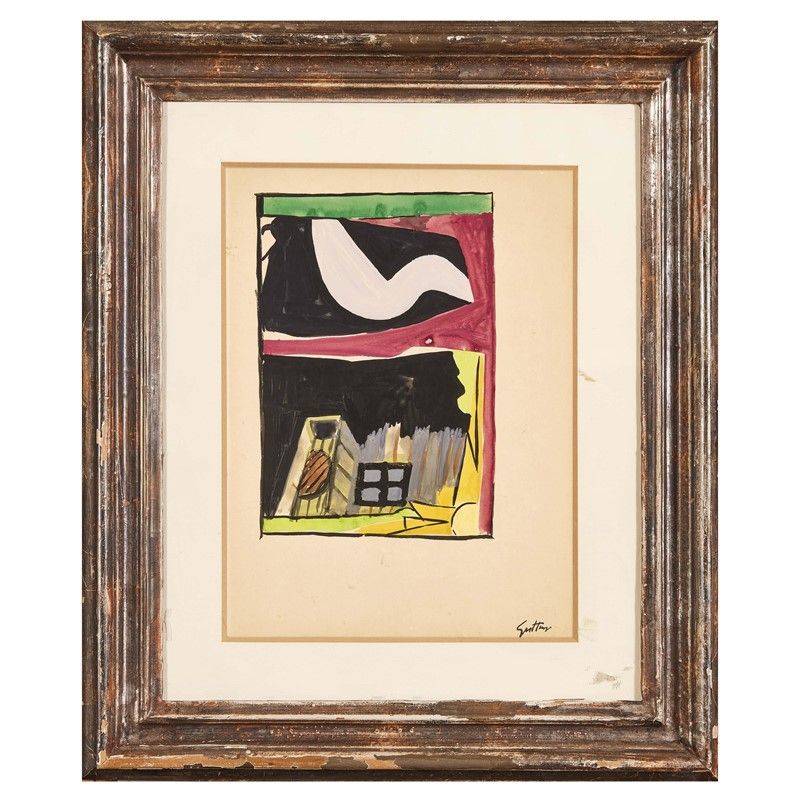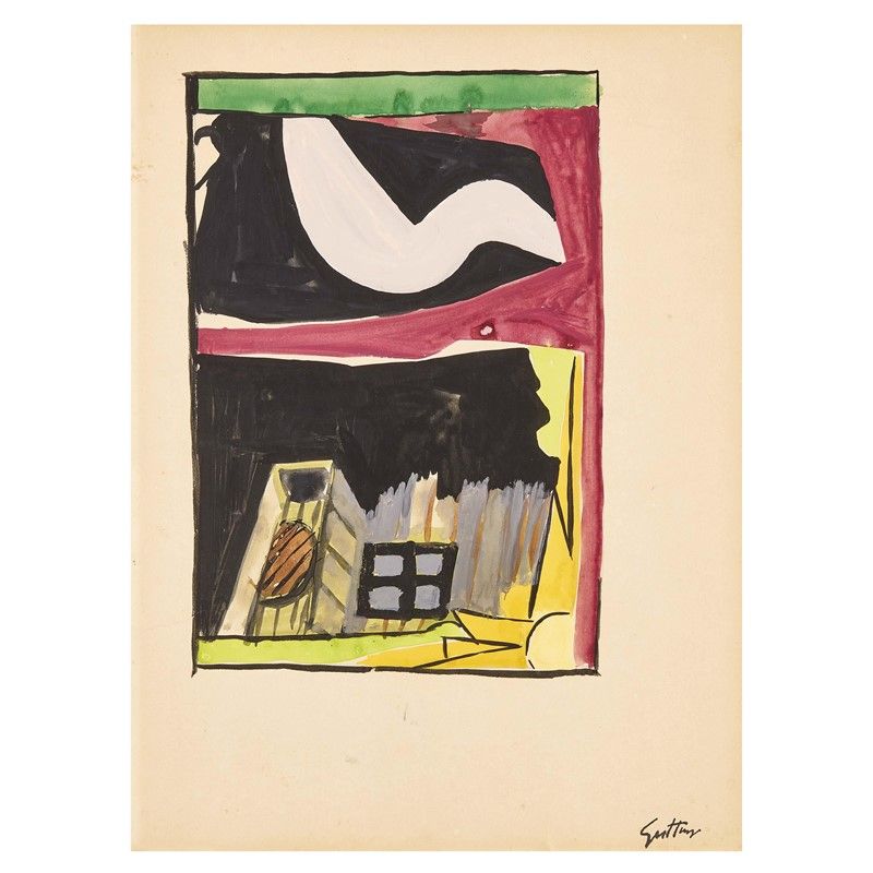 RENATO GUTTUSO (Bagheria 1911 - Roma 1987) Senza titolo (bozzetto di scena per Lady Macbeth) 1947 china, aquarello e tempera su carta gialla cm 40,5x30 firmato in basso a destra