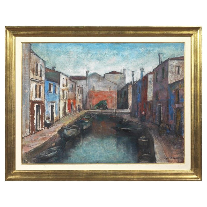 SILVIO CONSADORI (Brescia 1909 - Burano (VE) 1994) Burano - Cavanella 1965 olio su tela cm 60x80 firmato in basso a destra al retro firmato al retro cartiglio e timbro Galleria Ponte Rosso, Milano
