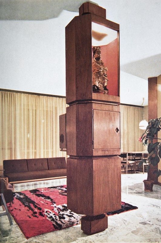 Arturo Belloni e (XX) Gemma Skoff (XX) MOBILE TOTEM GIREVOLE struttura in legno e rivestimento interno in velluto rosso Produzione Italia, 1965 circa cm H340xL80XP80