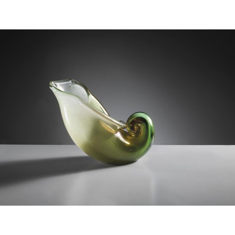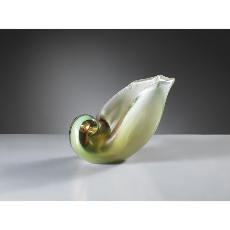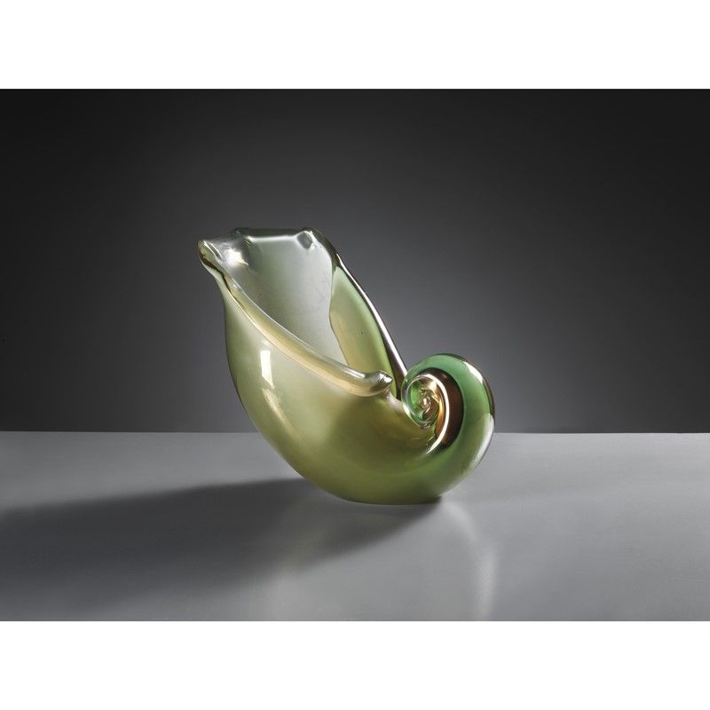 in vetro composto a due colori iridato nei toni del verde e bianco