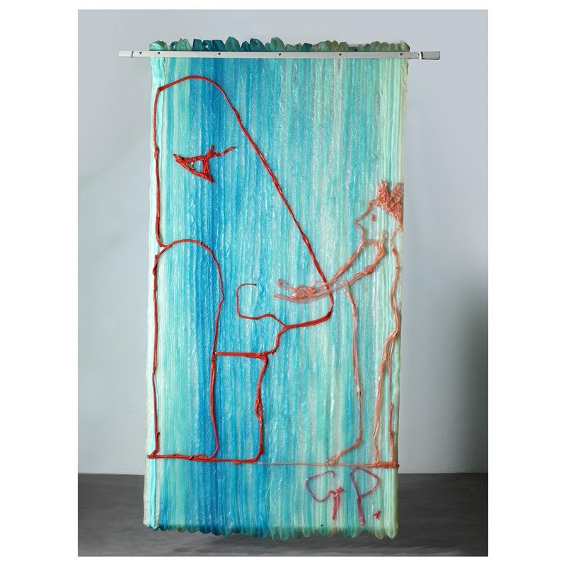 TAPESTRY PANEL, LIGHT BLUE AND GREEN SILICON AND RESIN STRUCTURE