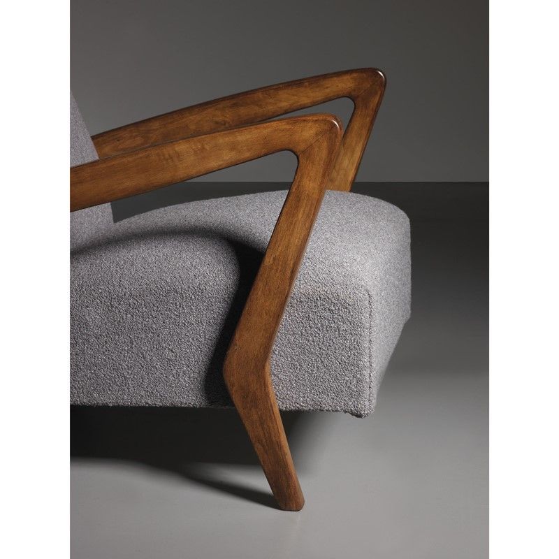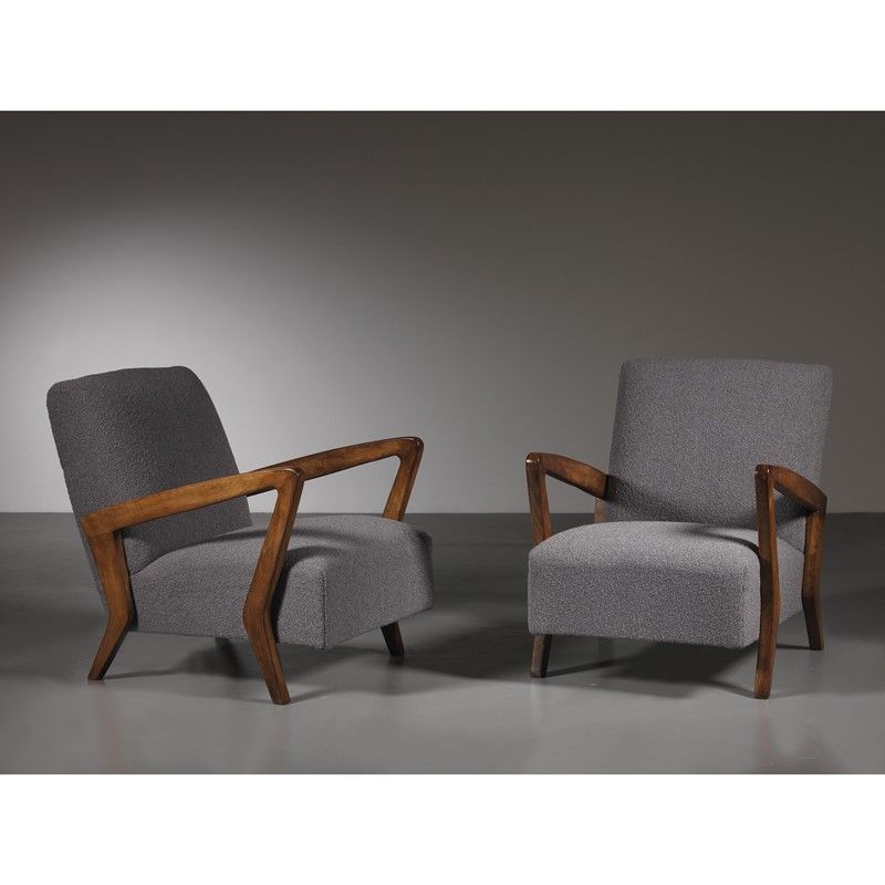 Gio Ponti (Milano, 1891 - 1979) COPPIA DI POLTRONE struttura in legno, cuscini rivestiti in tessuto nei toni del grigio Produzione Italia, 1950 circa cm H73xL60xP80 Expertise dell’Archivio Gio Ponti