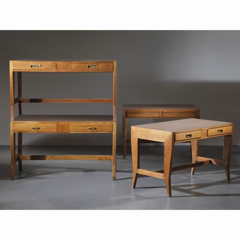 Gio Ponti (Milano, 1891 - 1979) DUE SCRIVANIE In legno Produzione Italia, per la Banca Nazionale del Lavoro, 1955 circa cm H80xL139,5xP70 cm H79xL120xP70 Expertise dell’Archivio Gio Ponti