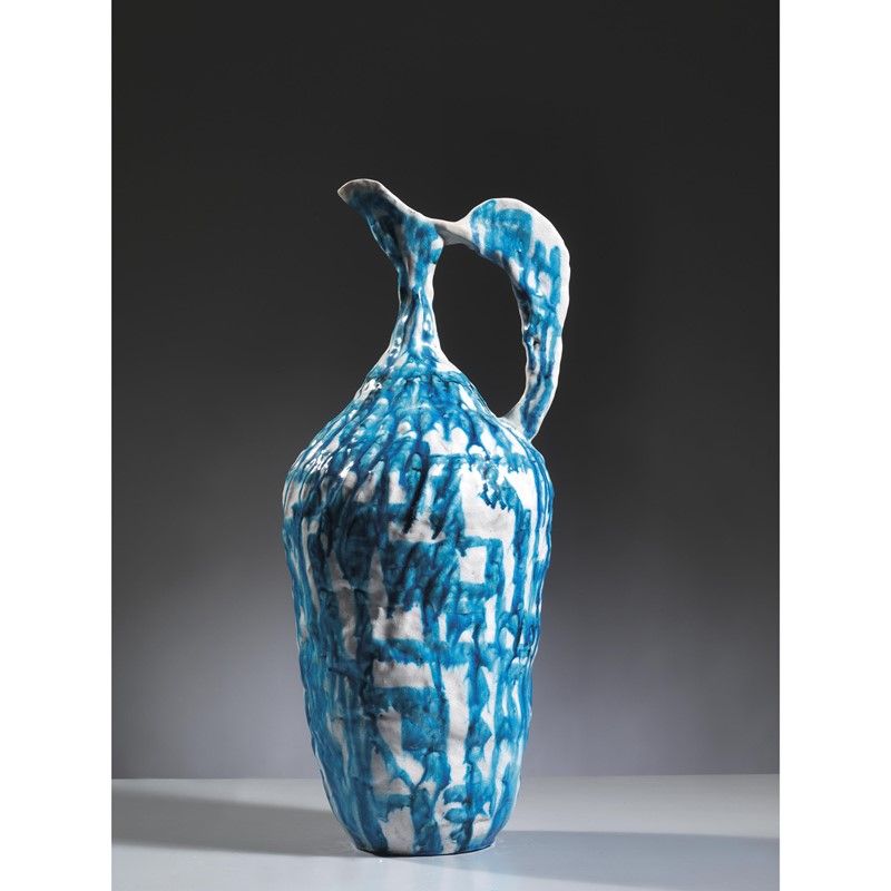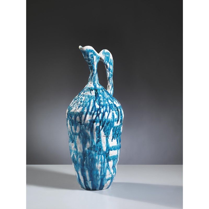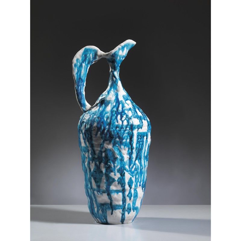 WITHE AND LIGHT BLUE CERAMIC VASE