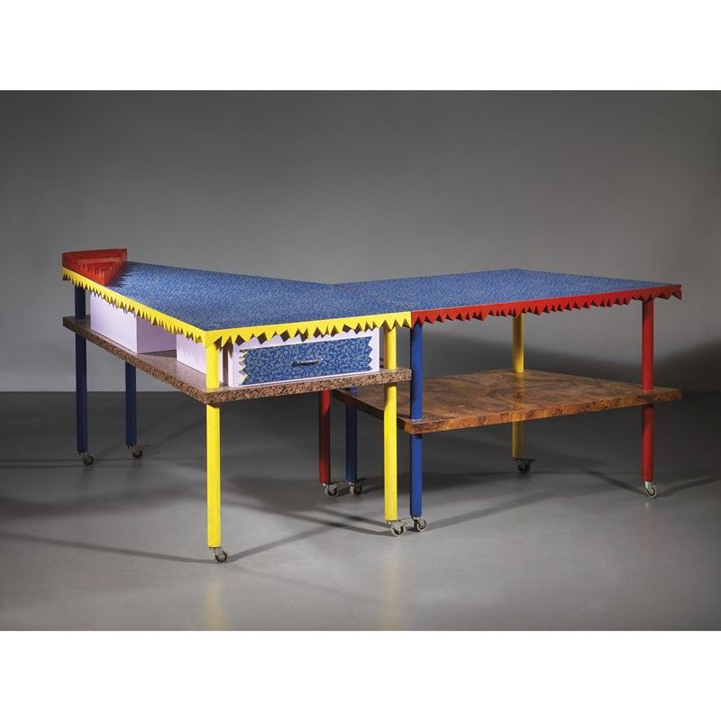 TWO-MODULE DESK ON WHEELS, WOOD AND PLASTIC LAMINATE