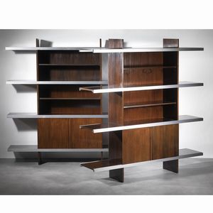 Angelo Mangiarotti (Milano, 1921) COPPIA DI LIBRERIE COMPONIBILI MODELLO MULTIUSE struttura in legno con profili [..]
