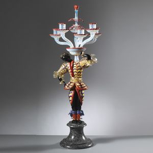 Archimede Seguso (Murano, 1909 - 1999) GRANDE LAMPADA DA TAVOLO in vetro policromo con base in marmo, raffigurante [..]
