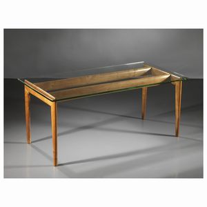 Carlo Keller (Cles, 1906 - Trento, 1982) TAVOLO struttura in legno, ripiano in vetro Produzione Italia, 1955 circa [..]