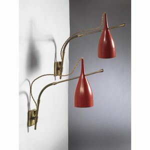 Angelo Lelii (Ancona, 1915 - Monza, 1979) COPPIA DI APPLIQUE MODELLO LUCINELLE in ottone e alluminio nei toni [..]