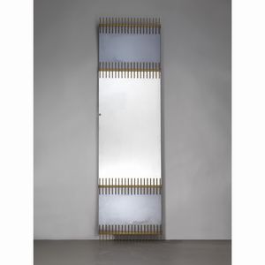 Ettore Sottsass (Innsbruck, 1917 - Milano, 2007) SPECCHIERA DA PARETE in ottone e specchio Produzione Santambrogio [..]
