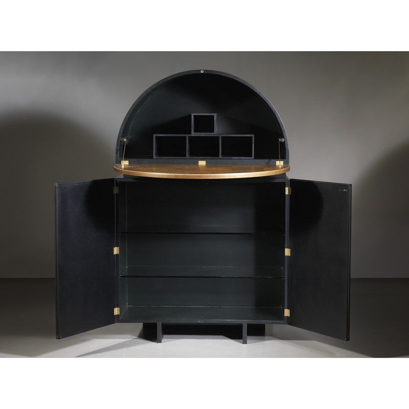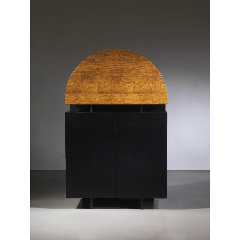 PROTOTYPE BAR CABINET, BLACK LACQUERED WOOD AND BRIARWOOD