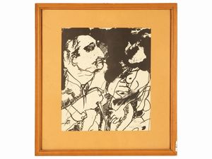 cm 38x56 due tecniche miste su carta, firmate, una datata 1959, in cornice, lievi difetti