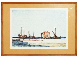 cm 50,5x70 tempera su cartone, firmato e datato, in cornice, minime imperfezioni lungo i margini