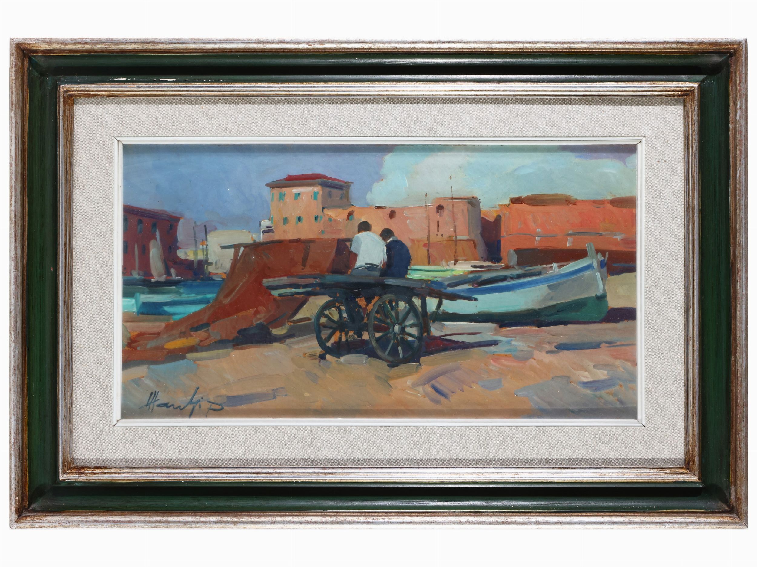 olio su faesite, firmato, firmato e titolato al verso, in cornice
