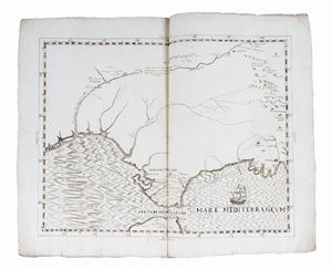 Amsterdam: 1606 ca. Incisione in rame. mm 357x515. Foglio: mm 455x575. Carta della Provenza, da Avignone al delta [..]