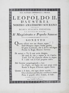 Siena: Stamperia della Comunità ed Arcivescovile per Francesco Rossi e Figlio, 1804. Incisione. mm 735x462. Con [..]