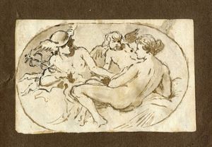 Penna e inchiostro bruno, pennello e acquerello marrone chiaro carta vergellata avorio. mm 75x118.