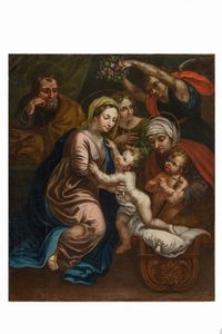 Da Raffaello. 1720 ca. Olio su tela. cm 100x83,5. Replica in controparte dal dipinto ultimato da Raffaello attorno [..]
