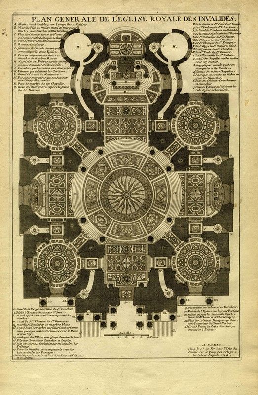 Acquaforte e bulino. mm 235x342. Foglio: mm 270/290x412/420. Lotto di 16 tavole comprese tavole di descrizione da L'Atlas Curieux Ou Le Monde Répresenté Dans Des Cartes Générales Et Particulières Du Ciel Et De La Terre, Parigi 1700-1705. L'Atlas Curieux è un'enciclopedia geografica di vedute e mappe della Francia, vedute dettagliate del grande acquedotto di Marly, di palazzi e castelli, piante dell'Osservatorio di Parigi e vedute e piante di architetture militari. Pubblicate in sei uscite annuali dal 1700 al 1705, le mappe si basano sulle nuove osservazioni dell'Académie des Sciences e sono state redatte con l'assistenza di Philipe de La Hire. Il lotto contiene 4 tavole dedicate all'acquedotto di Marly, 8 alla chiesa e all'hotel degli Invalides, 1 tavola raffigurante il Plan de la belle et manifique Maison de Monsieur St. Cloud, 1 tavola la Bataille de Fleurus. Le restanti sono tavole esplicative.