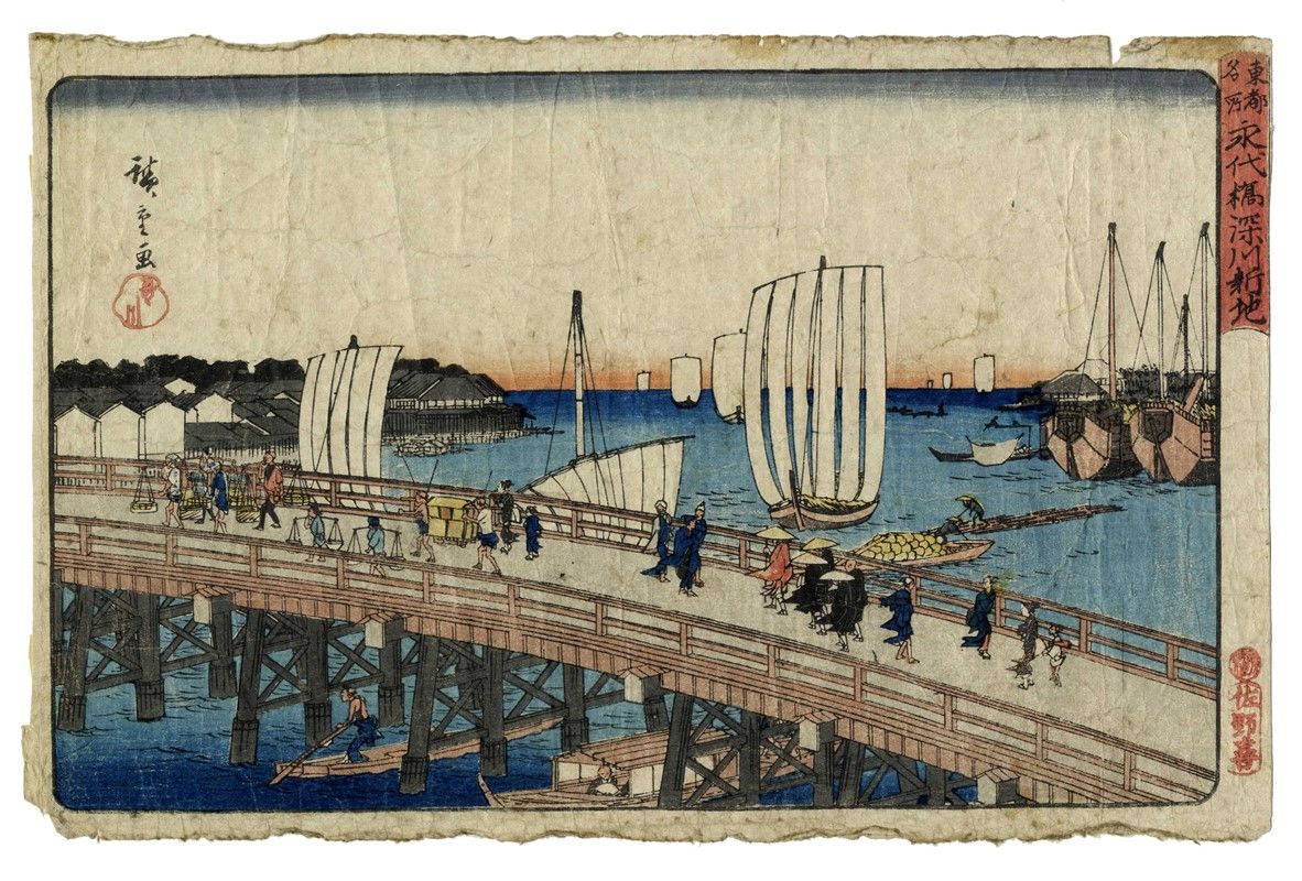 Xilografia a colori(nishiki-e). Formato: ôban orizzontale (mm 235x360). Firma: Hiroshige ga. Editore: Sanoya Kihei (Kikakudô). Censura: kiwame. Data: 1835–38 (Tenpô 6–9). Serie: Tôto meisho (Luoghi famosi nella capitale orientale).