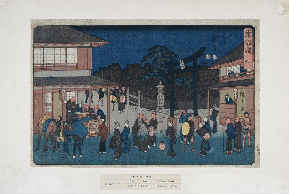 Xilografia a colori (nishiki-e). Formato: ôban orizzontale (mm 230x358). Firma: Hiroshige ga. Editore: Maruya Seijir?. Censura: kiwame. Data: 1847-1852. Serie: T?kaid? gojusan tsugi (Reisho T?kaid?). Settima tavola da Le cinquantatre stazioni della T?kaid?.