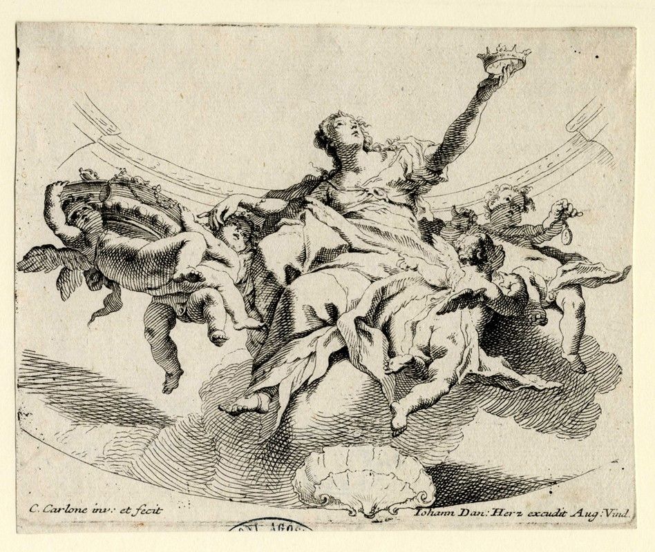 Acquaforte. mm 144x177. De Vesme, 5. Ottima prova nel I stato di 2, prima della comparsa della scritta "PASSE TEMPS des artistes..." in alto sulla lastra, su carta vergellata sottile priva di filigrana. Al verso, e parzialmente visibile in basso al centro al recto, marchio della collezione del pittore Agostino Caironi (Lugt, 426).