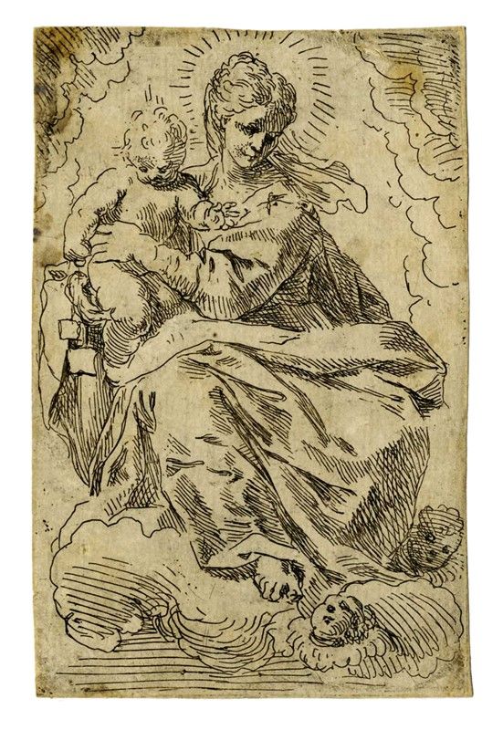 Acquaforte. mm 130x85. Bartsch, 19. Bellini (Cantarini), 41. Opera attribuita non unanimemente al Cantarini sebbene la si trovi di solito inserita nel suo corpus grafico. Buona prova di questo foglio non comune, nell'unico stato e senza alcuna scritta, su carta vergellata sottile. Al verso marchio del Cooper Union Museum, New-York (Lugt, 457e).