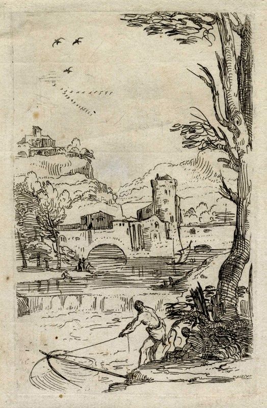 Acquaforte. mm 122x80. Foglio: mm 133x88. Bellini (Testa), 6. Ottima prova di questa rara incisione, nell'unico stato noto, su carta vergellata sottile priva di filigrana.