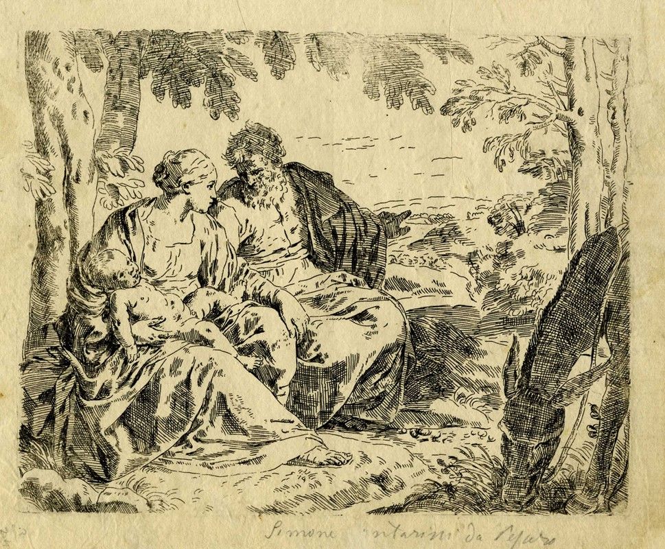Acquaforte. mm 155x194. Foglio: mm 180x215. Bartsch, 4. Bellini (Cantarini), 15. Senza alcuna scritta sulla lastra. Bellissima impressione nell'unico stato su carta vergellata sottile priva di filigrana.