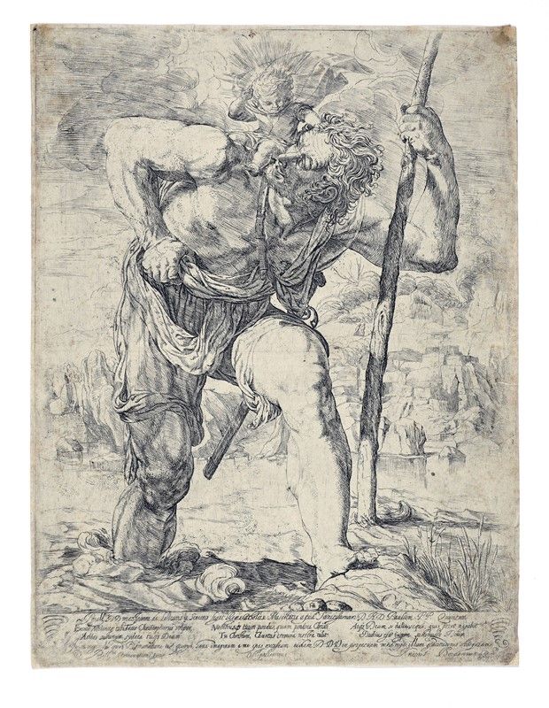 Acquaforte. mm 390x294. Foglio: mm 394x296. Bartsch, XVII, 53. Firmata al margine inferiore a destra sotto la dedica a Juan de Lezcano segretario di De Castro, ambasciatore spagnolo a Roma. Ottima prova nel I stato di 2 avanti l'indirizzo di De Rossi, su carta vergellata pesante priva di filigrana. Lievemente sdoppiata l'iscrizione alle due righe finali nel margine inferiore.