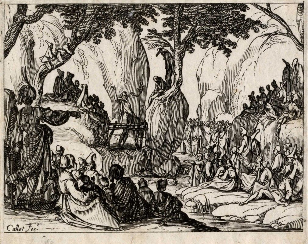 Acquaforte. mm 75x83. Lieure, 1415. Firmata sulla lastra in basso a sinistra. Bellissima prova nell'unico stato stampata con bel contrasto su carta vergellata sottile priva di filigrana. SI AGGIUNGE: Id., Entrée de Monsier de Couvonge et de Chalabre. 1625-1627. Acquaforte. mm 75x235. Lieure, 585. Prima lastra in sovranumero del Combat à la barriére. Bellissima impressione nell'unico stato brillante e nitida stampata su carta vergellata sottile priva di filigrana.
