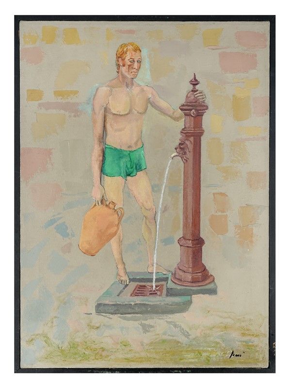Olio su tela. cm 70x50. Firmato in basso a destra. Titolato e controfirmato al