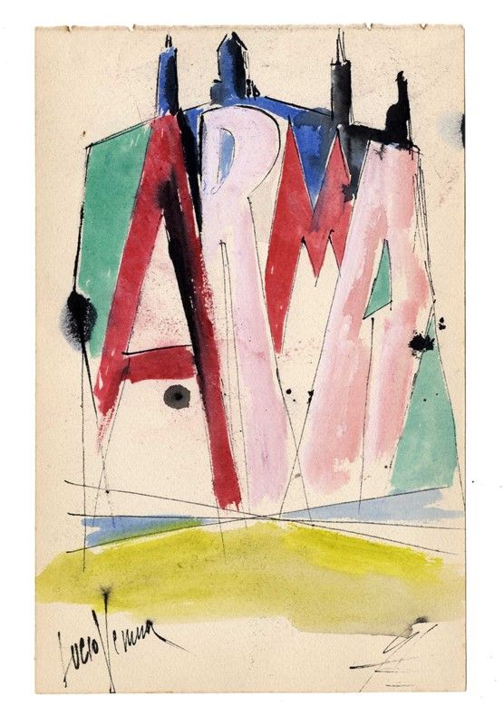 Acquerello, penna e inchiostro di china su carta. mm 219x140. Firmato in basso a sinistra.