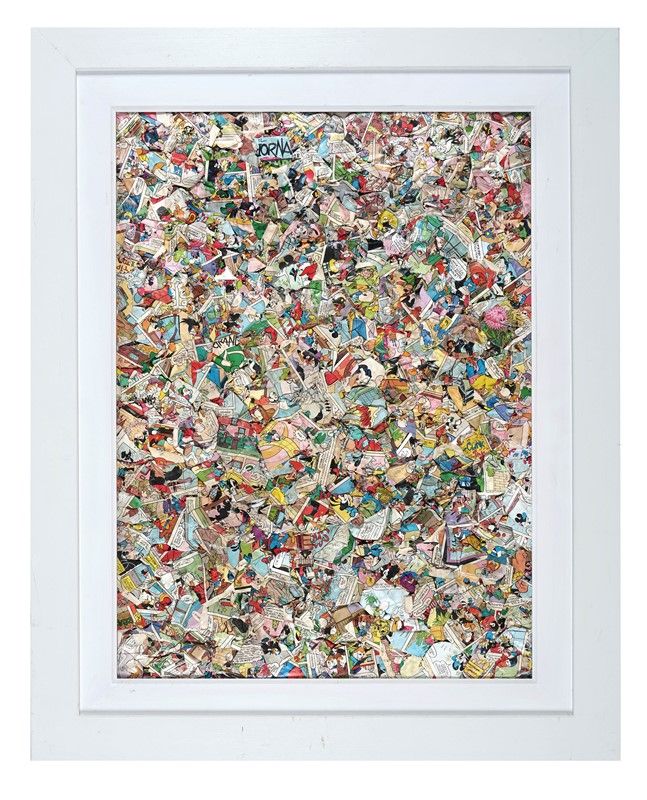 Collage su tela. cm 59x43. Firmato, titolato e iscritto a pennarello nero al verso. Opera accompagnata da autentica su fotografia.