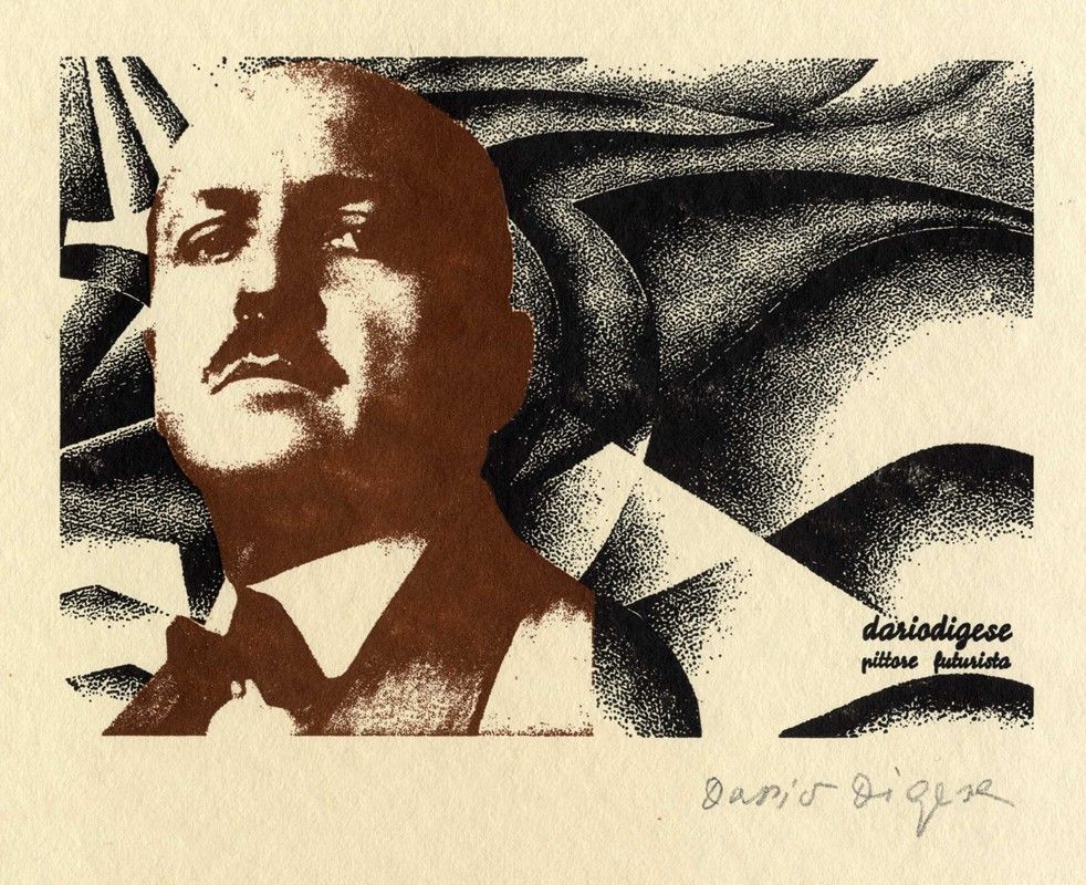 Litografia. mm 140x200. Foglio: mm 252x350. Firma a matita in basso a destra e controfirma in lastra con l'aggiunta di "pittore futurista" in basso a destra.