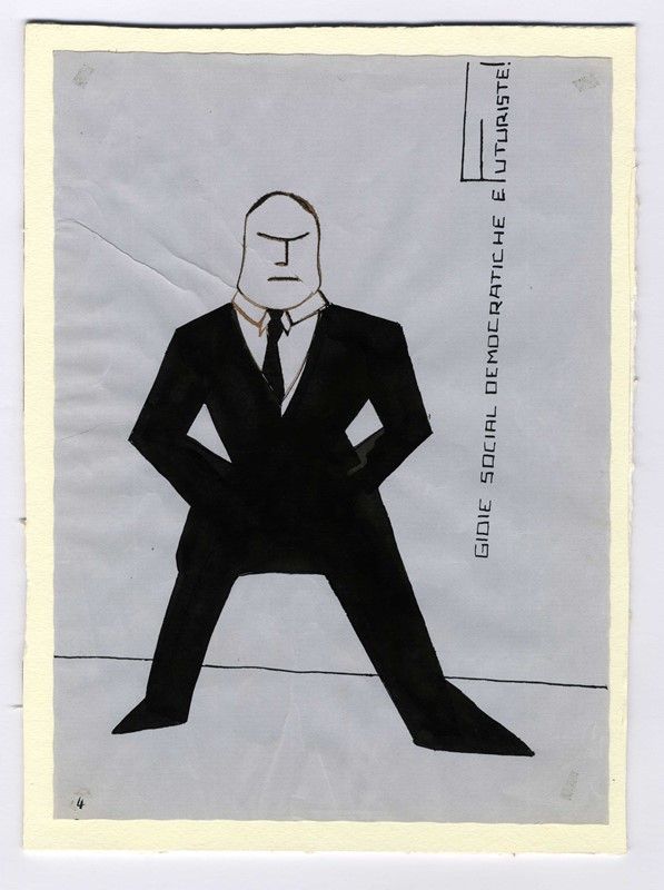 Penna e inchiostro di china su carta azzurra. mm 260x190. Titolo al margine destro, "4" in basso a sinistra.