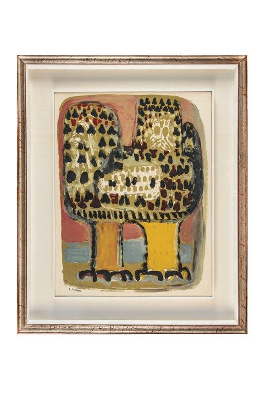 Tecnica mista su carta. cm 495x383. Firma a pennarello nero in basso a sinistra. Provenienza: Gallerita, Milano, di cui è presente il timbro al verso.