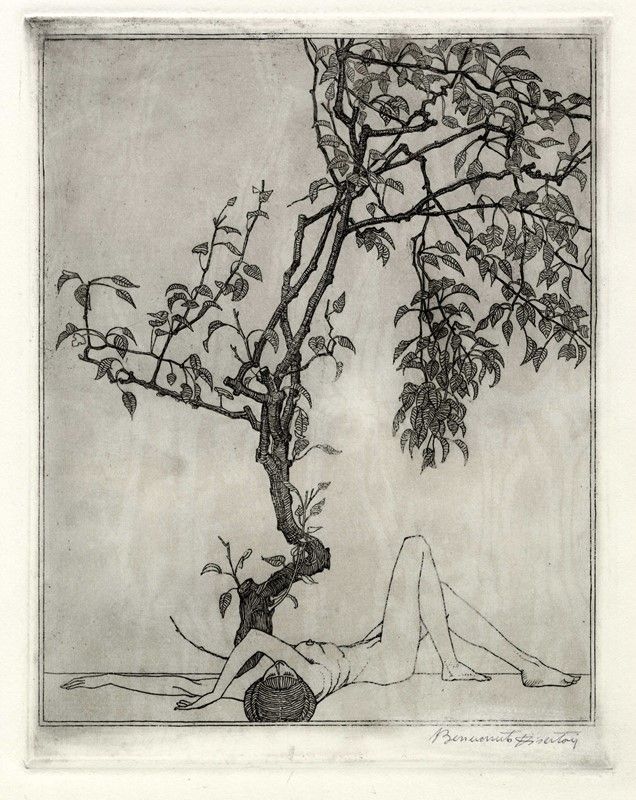 Acquaforte. Inciso: mm 273x222. Lastra: mm 298x235. Foglio: mm 495x347. bellini-alberti, 63. Firmata a penna a sfera nera in basso a destra. Alberti data con riserva l'incisione al 1948 sulla base della testimonianza della moglie dell'artista, nonostante lo stile riconducibile al Liberty. Propendiamo tuttavia per la data 1913 riportata dal più recente Benvenuto Disertori. Un segno Liberty, catalogo della mostra a cura di Alessandra Tiddia, Mart, Trento, 2012. Provenienza: Eredi Disertori.